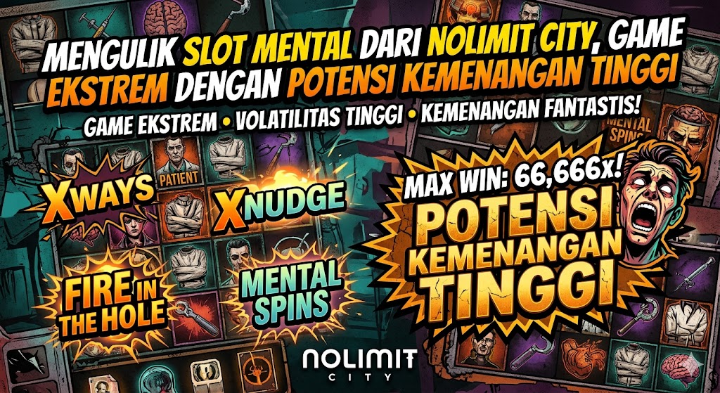 Kalau lo bosan sama slot mainstream yang itu-itu aja, Mental dari Nolimit City bisa jadi pilihan yang beda. Slot ini punya tema rumah sakit jiwa yang gelap, dengan nuansa yang cukup ekstrem dibanding slot biasa.